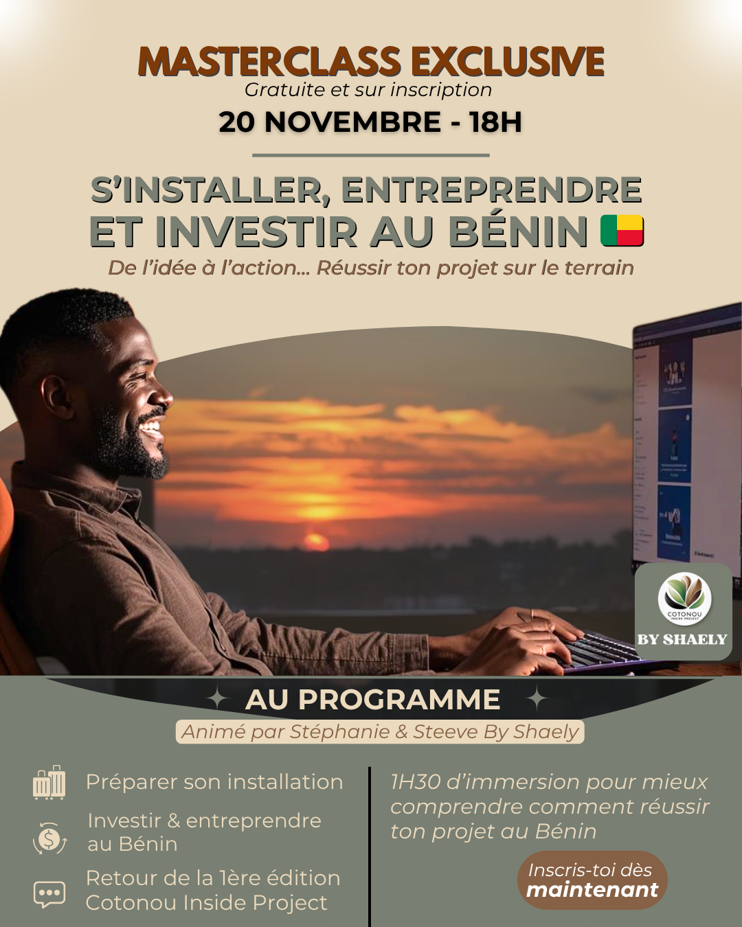 âš 10 jours dâimmersion stratĂ©gique pour explorer le BĂ©nin, comprendre ses rĂ©alitĂ©s et poser les fondations concrĂštes de ton projet de vie ou dâinvestissement â avec un accompagnement de terrain, des connexions locales solides, une vision claire⊠et zĂ©ro blabla.